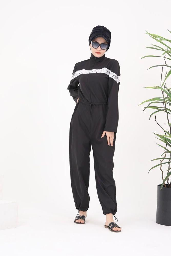 Floria Beyaz Şeritli Tasarım Tesettür Paraşüt Kumaş Tulum Mayo (NSTSRB52150)
