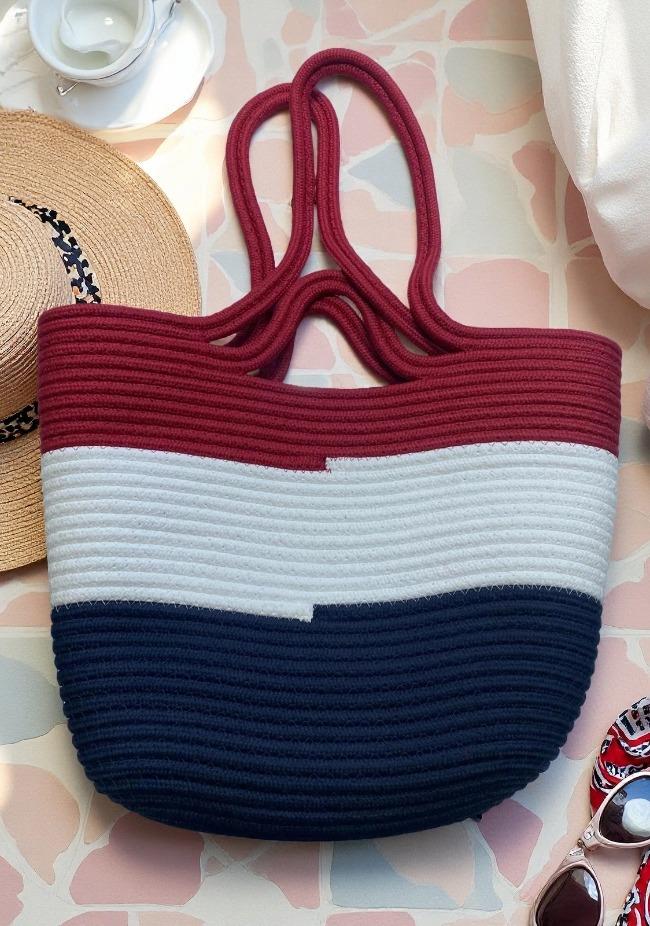 Wave Model Üç Renkli Kırmızı Hasır Plaj Çantası (2024)
